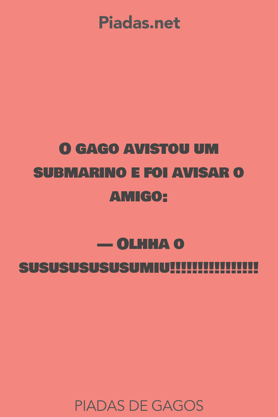 Abaixo está nossa coleção de piadas engraçadas e lista de anedotas do Gagos . Existem algumas piadas gagos curtas caga que ninguém sabe (para contar aos seus amigos) e para fazer você rir alto.